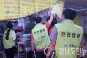 (거창/최병일) = 거창군(군수 양동인)은 지난 18일부터 21일까지 거창상설시장과 버스터미널 등 다중이용시설에 대해 추석 명절 대비 특별 안전점검을 실시했다고 밝혔다. 이번 점검은 추석 명절을 대비하여 거창상설시장, 버스터미널, 영화관, 마트 등 추석 연휴기간에 사람들이 많이 찾는 다중이용시설 18개소에 대해 군 관계부서, 소방서, 전기안전공사, 가스안전공사 등 유관기관 합동으로 진행됐다. 주요점검 사항으로는 전기시설의 안전관리상태, 가스 누설 유무, 소화기 관리상태 등이다. 특별점검 결과 냉장시설의 접지 미설치, 가스누설 감지, 소화기 관리상태 부실 등이 지적됐다. 가스누설 등 경미한 사항은 즉시 안전조치를 했고, 미조치사항은 추석 연휴 전까지 안전조치를 할 예정이다. 거창군은 앞으로도 수시안전점검을 실시해 안전에 대한 경각심을 고취시키고, 군민들의 안전 불감증으로 인한 사고가 발생되지 않도록 지속적인 계도와 개선으로 안전한 거창군을 만드는데 최선을 다 할 계획이다.
