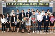 (거창/최병일) = 거창군(군수 양동인)은 지난 13일 군청 대회의실에서 친절분위기 조성을 위한친절 King 공무원 콘테스트를 열었다. 이번 친절공무원 콘테스트에는 13명의 직원이 참가해 현장에서 느낀 경험담을 다양하고 흥미롭게 표현해 관중들의 큰 호응을 얻었다. 이날 수상자는 ‘친절! 좀 뚱뚱하면 어때?!’를 발표한 고제면 유원정 주무관이 최우수의 영광을 안았다. 우수는 보건소 최예린, 장려는 재무과 박현지, 거창읍 오강준 주무관이 선발됐다. 하태봉 부군수는 인사말을 통해 “진정한 마음에서 우러나오는 친절은 자신을 아름답게 하며 누군가를 기쁘게 한다”며 “이번 친절 콘테스트가 공무원 개개인에게 전달되어 조직을 변화시키는 계기가 되기를 기대한다”고 말했다. 이번 대회에서 선발된 수상자는 10월 개최되는 경상남도 Best 친절공무원 콘테스트에 거창군 대표로 참가하게 된다.