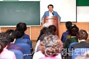 양동인 거창군수는 지난 15일 대한노인회 거창군지회부설 노인대학(학장 문병탁)에서 ‘살며 사랑하며 그리고 배우며 사는 행복한 삶’이라는 주제로 특강을 했다. 첫 번째 강의는 힐링과 승강기 산업으로 인구 10만의 도시 지지기반을 다지기 위해 미래 산업으로 주력하고 있는 승강기 산업과 지역인재 유출을 방지하고 젊은 노동력을 수혈하겠다는 목표로 하는 기업유치, 그리고 일과 항노화 산업으로 휴식 거창을 만들기 위한 사업인 가조면 항노화 힐링랜드 조성, 고제면 산림레포츠 파크 조성사업, 남상면 창포원 사업 등을 구체적으로 설명했다. 그리고 교통복지와 지역경제 활성화를 위해 7월 1일부터 시행한 천원버스, 학교급식지원센터를 정상화해 34개 학교 1만명의 학생에게 연간 53억 원 정도의 식자재를 납품하고 있다는 내용 등도 상세히 전했다. 두 번째 강의에는 노인인구가 전체의 25.2%로 초고령 사회로 진입함에 따라 건강하고 행복한 장수마을 만들기를 위해 군에서 시행하고 있는 다양한 노인복지사업을 소개했다. 현재 송정택지개발지구에 신축 중인 노인복지회관은 11월 8일 완공을 목표로 공사가 진행 중에 있다. 437개 경로당에는 냉난방비 운영비 등 21억