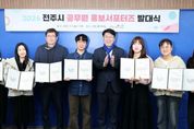 [경남도민뉴스=최인태 기자] 전주시가 공무원들의 톡톡 튀는 아이디어와 현장감을 바탕으로 시민과의 소통을 넓히기 위해 올해도 ‘전주시 공무원 홍보 서포터즈’를 운영키로 했다. 시는 9일 시청 3층 회의실에서 ‘2026 전주시 공무원 홍보 서포터즈’ 발대식을 개최했다. 이 자리에서 우범기 전주시장은 올해 활동할 서포터즈 8명에게 위촉장을 수여하며 앞으로의 활동을 격려했다. 올해 선발된 전주시 공무원 홍보 서포터즈는 시청과 완산·덕진구청, 동 주민센터 등지에서 근무하는 직원 8명으로 구성됐으며, 이들은 시정에 대한 깊은 이해와 홍보 역량을 바탕으로 앞으로 전주시의 핵심 정책과 축제, 관광, 문화 등 다채로운 소식을 시민의 눈높이에 맞춰 보다 쉽고 재밌게 전달하는 역할을 수행하게 된다. 특히 올해는 더욱 강화된 트렌드에 발맞춰 SNS 숏폼 콘텐츠 제작을 중점 추진하고, 전주만의 색깔을 담은 콘텐츠를 직접 기획·출연하는 등 시민과 활발히 소통하며 시정 홍보의 파급력을 높일 계획이다. 우범기 전주시장은 “공무원으로서의 전문성과 시민의 시각을 동시에 갖춘 만큼 시민 눈높이에서 쉽게 이해하고 공감할