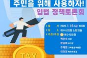 [경남도민뉴스=최인태 기자] 여수시의회는 오는 1월 16일 오전 10시 30분, 여수시의회 소회의실에서 '주민이 낸 주민세, 주민을 위해 사용하자' 입법 정책토론회를 개최한다. 이번 토론회는 백인숙 여수시의회 의장, 문갑태 부의장, 주재현 위원장, 이미경 특별위원장이 공동으로 주최·주관하며, 주민자치회 활성화와 관련해 주민세 활용의 법적·제도적 쟁점을 점검하고 타 지방자치단체의 사례를 분석해 여수시 여건에 맞는 주민세 재정 연계 방안을 모색하기 위해 마련됐다. 특히 향후 '여수시 주민자치회 시범 실시 및 설치·운영 조례' 개정 논의에 앞서 사회적 공감대를 형성하고 정책적 정당성을 확보하는 데 목적이 있다. 토론회에는 주민자치회 회원과 시민단체 관계자, 공무원, 시민 등 50여 명이 참석할 예정이며, 순천YMCA 김석 총장의 주제발표를 시작으로 지정토론과 자유토론이 이어질 계획이다. 백인숙 의장은 “주민이 낸 세금이 주민 스스로의 결정과 참여를 통해 지역에 환원되는 구조는 풀뿌리 민주주의의 핵심”이라며 “이번 토론회가 주민자치의 실질적 발전과 제도 개선으로 이어지는 계기가 되길 기대한다”고 밝혔다.