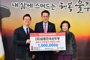 [경남도민뉴스=최재경 기자] ㈜삼동민속손두부가 7일 울주군에 지역 저소득층을 위한 성금 100만원을 전달했다. 울주군은 이날 군청 소회의실에서 이순걸 군수와 삼동민속손두부 김원자 대표, 울산사회복지공동모금회 관계자 등이 참석한 가운데 성금 전달식을 가졌다. 전달된 성금은 울산사회복지공동모금회를 통해 울주군 삼동면 저소득 세대에 지원할 예정이다. 김원자 대표는 “작은 정성이지만 추운 겨울이 더욱 힘겨울 우리 이웃들에게 온기와 희망을 전해줄 수 있길 바란다”며 “앞으로도 꾸준히 기부활동에 참여해 더 살기 좋은 세상이 되도록 돕겠다”고 밝혔다. 이순걸 군수는 “늘 잊지 않고 지역의 소외계층을 위해 기부활동에 참여해 주셔서 감사드린다”며 “지역 복지사각지대 해소를 위해 울주군도 더욱 노력하겠다”고 밝혔다.