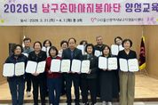 [경남도민뉴스=최재경 기자] 울산 남구자원봉사센터는 7일 센터 대강당에서 교육생 13명이 참석한 가운데 ‘2026년 남구손마사지봉사단 양성교육 수료식’을 개최했다. 이번 교육은 총 3회의 이론 및 실기 과정을 통해 전문 역량을 갖추는 데 중점을 두고 진행됐다. 이날 수료한 교육생들은 향후 ‘남구손마사지봉사단’으로서 관내 경로당 자원봉사활동과 지역 행사 지원 등 다양한 현장에서 나눔 활동을 펼칠 예정이다. ‘남구 손마사지봉사단’은 지난 2024년부터 양성교육을 통해 활동을 시작했으며, 매년 15회 이상 정기적으로 활동 중이다. 최근 활동 인원이 5명 정도로 줄어 경로당 자원봉사 수요를 충족하기 어려워 이번에 새로이 손마사지봉사단 양성교육을 실시하게 됐다. 최영수 남구자원봉사센터 이사장은 “바쁜 일정 속에서도 열정적으로 모든 교육 과정을 마치고 수료하는 봉사자분들께 진심으로 감사의 인사를 전한다”며 “전문 기술을 갖춘 봉사단의 손길을 통해 지역사회 곳곳에 따뜻한 나눔 문화가 더욱 견고하게 뿌리내릴 수 있도록 앞장서 주길 기대한다”고 당부했다.