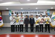 [경남도민뉴스=표재민 기자] 철원군은 1월 12일 11시 30분 철원군청에서 2026년 신규 및 재계약 유도 및 태권도 실업팀 선수 입단식을 개최했다. 먼저, 유도팀 재계약 선수들은 2025 제106회 전국체육대회 금메달리스트인 –100kg 원종훈 선수, 동메달 리스트인 –90kg 이승수 선수와 각종 전국대회 1위에 빛나는 –60kg 이상민 선수와 재계약을 했다. 태권도팀은 2025 제106회 전국체육대회 은메달리스트인 –80kg 서강연 선수를 신규영입했고, 전국태권도대회 수상자들인 +87kg급 김민서, -80kg급 조재연 선수와 재계약을 체결했다. 우수 선수들을 보강한 철원군 유도 및 태권도 실업팀은 선수들의 경기력 향상과 좋은 성적을 내어 철원군 체육발전 및 홍보에 큰 기여를 할 것으로 기대하고 있다. 이현종 철원군수는 “우리 철원군 실업팀에 입단한 것을 진심으로 환영한다. 2025년 좋은 성적을 거두어 준 만큼, 붉은 말의 해인 2026년도에도 영광의 한 해로 만들 수 있게 많은 지원과 관심을 보내겠다”고 전했다.