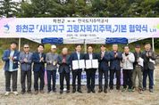 [경남도민뉴스=표재민 기자] 화천군이 고령자들의 주거안정을 위해 추진 중인 사내 고령자 복지주택 건설사업이 본 궤도에 올랐다. 화천군은 지난 20일 사업현장인 사내면 사창리 예정부지에서 한국토지주택공사(LH) 강원지역본부 측과 기본협약을 체결했다. 사내 고령자 복지주택 사업은 지난 8월 기본설계가 완료됐다. LH는 이번 협약에 따라 올해 안에 국토교통부에 주택건설 사업계획 승인을 요청하게 된다. 화천군은 내년 실시설계가 마무리되는 대로 LH와 실시협약을 체결할 계획이다. 실시협약이 완료되면, LH는 2027년 1월 본 공사에 착공하게 되며, 예상 준공시기는 2028년 12월이다. 총사업비 약 280억원이 투입되는 사내 고령자 복지주택은 3,627㎡ 부지에 10층 규모로 건설된다. 1층은 사회복지시설이 들어서며, 2~10층에는 모두 60세대의 주거공간이 마련된다. 사회복지시설에는 경로당과 트레이닝 센터, 프로그램실, 대강당, 건강증진실 등이 설치된다. 입주자 모집은 2028년 9월 예정이며, 65세 이상 고령의 무주택자가 입주 대상이다.
