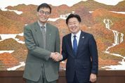 [경남도민뉴스=하형수 기자] 제주특별자치도는 제주경제의 정밀 진단과 실효성 있는 정책 수립을 위해 한국은행과 협력체계를 구축한다. 오영훈 지사는 9일 오후 서울 한국은행 본점에서 이창용 한국은행 총재를 만나 제주 지역경제 분석의 정확도를 높이기 위한 한국은행과의 협력 방안을 제안했으며, 한국은행 측은 방법론과 기초자료 제공 등 기술적 지원을 검토하겠다고 밝혔다. 현재 지역산업연관표는 매출액 규모가 큰 사업체 중심의 표본조사 결과를 전국 단위로 배분하는 장식으로 작성되고 있다. 그러나 이 방식은 제주지역의 산업 투입 구조와 역외 거래 특성을 충분히 반영하지 못한다는 한계가 있다. 관광산업 중심의 제주 산업구조는 전국 평균과 상이한 특성을 보이기 때문에, 실측조사를 통해 제주 실정에 맞는 산업연관표를 작성하면 보다 정밀한 경제 분석이 가능하고, 이를 바탕으로 합리적인 정책 수립도 가능해진다. 오영훈 지사는 이날 면담에서 “지역경제 구조를 정밀하게 분석하기 위해서는 세밀한 접근이 필요하다”며 “이 과정에서 한국은행과 의미 있는 협업 사례가 만들어지길 기대한다”고 말했다. 또한 “제주에서 추진
