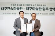 [경남도민뉴스= 기자] (재)대구문화예술진흥원 대구미술관과 대구간송미술관은 지난 6월 10일 오후 3시 30분 대구간송미술관에서 소장품 수리 복원과 보존을 위한 업무협약을 체결했다. 이번 협약은 2024년 9월 2일 체결한 진흥원-대구간송미술관 간 기본 협약을 토대로, 양 기관의 실질적인 협력 사항을 구체화한 것이다. 두 기관은 소장품의 체계적 보존을 위한 협력을 통해 문화자산의 활용성과 공공성을 높이고자 한다. 6월 10일 체결한 업무협약에 따라 대구미술관과 대구간송미술관은 ▲ 대구미술관 소장품의 수리복원 및 보존, ▲ 대구미술관 소장품의 보존과학적 조사 및 연구, ▲ 수리복원 및 보존 관련 전시, 교육, 행사 등 콘텐츠 공동 개발 등을 추진할 계획이다. 노중기 대구미술관장은 “이번 협약을 계기로 지역 미술관 간 협력체계를 공고히 하고, 문화자산의 전문적 관리와 기반을 더욱 견고히 하는 계기가 될 것이다”고 말했다. 한편 전인건 대구간송미술관장은 “대구간송미술관 설립 목적 중 하나인 대구/경북지역 문화유산과 작품의 수리 복원 및 보존 활동을 대구미술관과의 협력을 통해 한 단계 더