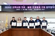 [경남도민뉴스=신석주 기자] 부산 서구는 지난 26일 ‘돌봄통합지원법’ 시행에 맞춰, 의료·요양·돌봄 통합지원기반을 조성하고자 ∆동아대학교대신병원(병원장 김기림), ∆바른병원(병원장 강정한), ∆선하요양병원(이사장 허방), ∆송도요양병원(이사장 정하용), ∆이의용밝은길요양병원(병원장 이의용)과 업무협약(MOU)을 체결했다. 이번 협약은 5개 의료기관과 상호 협력을 통해 퇴원 환자의 지역사회 복귀를 지원하고, 의료·요양·돌봄 서비스 간 유기적인 연계를 강화함으로써 퇴원 이후 발생할 수 있는 돌봄 공백을 최소화하는 체계적인 돌봄 서비스 제공을 목적으로 추진됐다. 공한수 서구청장은 “지역 의료기관과의 긴밀한 협력을 통해 퇴원 환자들이 지역사회에 안정적으로 정착하고 건강한 삶을 이어갈 수 있도록 지원하겠다”며 “앞으로도 지역사회 내 돌봄 공백 해소를 위한 맞춤형 돌봄 체계 구축에 최선을 다하겠다”고 말했다.