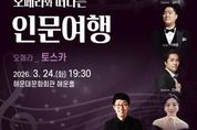 [경남도민뉴스=신석주 기자] 해운대문화회관은 24일 오후 7시 30분 오페라떼 시즌3 ‘오페라와 떠나는 인문 여행’ 첫 무대로 오페라 ‘토스카’를 해운홀에서 개최한다. ‘오페라떼’는 오페라(Opera)와 예술(Arte)의 합성어로 다양한 분야의 예술을 융합한 공연이란 뜻이다. 세계 명작 오페라의 주요 장면을 중심으로 작품이 담고 있는 철학·역사·문학적 맥락을 콘서트 가이드 김성민이 풀어내는 강연형 콘서트다. 관객들의 꾸준한 사랑을 받으며 쉽고 재미있는 클래식 공연으로 두터운 마니아층을 보유한 해운대문화회관만의 콘텐츠다. 이번 공연에는 소프라노 김유진, 테너 이태흠, 바리톤 안세범, 피아노 김경미가 출연해 오페라 ‘토스카’의 아리아와 중창을 실연으로 들려주며, 김성민 해설가가 관객의 이해를 돕는다. 예술과 인문학이 어우러지는 무대를 통해 누구나 쉽게 오페라를 접하고 새로운 문화적 경험을 할 수 있을 것으로 기대한다. 8세 이상, 1층 2만 원, 2층 1만 원, 예매 해운대문화회관 홈페이지, 할인율 등 자세한 사항은 해운대문화회관 홈페이지에서 확인할 수 있다.