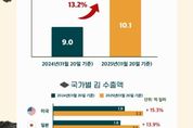 [경남도민뉴스=하형수 기자] 해양수산부는 2025년 한국의 김 수출 실적이 역대 최초로 10억 불을 돌파했다고 밝혔다. 2025년 우리나라 김 수출 실적*은 11월 20일 기준으로 10.15억 불(약 1.5조 원)을 달성하며 역대 최고치를 기록했다. 이는 우리나라 김(K-GIM)의 품질 경쟁력이 높아짐과 동시에 전 세계적 수요도 함께 증가한 결과로 분석된다. 특히 최근 몇 년간 김 소비가 급증하고 있는 북미와 유럽을 비롯한 주요 해외시장에서의 판매 증가가 김 수출을 견인한 것으로 보인다. 해양수산부는 김 수출 활성화를 위해 ▲김 양식장 신규면허 2,700ha 확대(총 66,204ha) 등 생산 기반 확충, ▲가공설비 현대화 등 가공 역량 확대, ▲해외 판로 개척, 국내외 물류 기반시설, 국제 인증 취득 지원 등 수출 단계까지 김 산업 전반에 대한 다양한 정책적 지원을 강화해 왔다. 특히, 해외 소비자의 식습관과 입맛에 맞춘 김스낵, 조미김 등을 개발하고, 한류 연계 마케팅을 확대해 수요를 이끌어내는 데 주력했다. 전재수 해양수산부 장관은 “올해 우리나라 김 수출 실적 10억 불 돌파는 해양수산부의 정책적 지