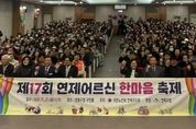 [경남도민뉴스=신석주 기자] 연제구는 11월 21일 오후 1시 30분 구청 구민홀에서 대한노인회 연제구지회(회장 윤봉숙)의 주관으로 ‘제17회 연제어르신 한마음축제’를 성황리에 개최했다. 이번 행사는 지역사회 발전을 위해 헌신한 어르신들의 노고에 감사드리기 위한 축제의 장으로 마련됐다. 경로당 어르신을 비롯해 부산시장, 연제구청장, 국회의원, 구의회 의장, 시의원 등 400여 명이 참석한 가운데 노인복지증진 유공자 시상과 다채로운 공연이 펼쳐졌다. 특히 이날 대한노인회 연제구지회는 ‘경로당 회원 확대’ 우수 상금 100만 원을 연제구 불우이웃을 돕기 위한 성금으로 기탁하며 나눔을 실천했다. 윤봉숙 회장은 “지역 어르신들이 즐기고 친목을 다지는 축제의 장이 됐으면 좋겠다”라며 “기탁한 성금이 힘든 이웃들이 따뜻한 겨울을 보낼 수 있도록 작게나마 도움이 됐으면 좋겠다”라고 말했다. 구 관계자는 “앞으로도 건전한 여가문화 생활과 복지 향상을 위해 최선을 다할 것”이라며 “전해주신 성금은 사회복지공동모금회를 통해 구민 복지에 잘 쓰일 수 있도록 하겠다”라고 말했다.