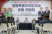 [경남도민뉴스=류종길 기자] 김진태 강원특별자치도지사는 '강원특별법' 군사특례를 활용한 첫 권한 행사로 지난 3월 군사규제 개선 성과를 거둔 철원군을 11월 14일 방문해 도지사 ‘마을진담회’(진솔한 +간담회)의 네 번째 자리를 마련했다. 이번 진담회는 주민과의 소통을 강화하고, 현장의 의견을 보다 폭넓게 듣기 위해 철원군을 김화·갈말권역과 철원·동송권역의 두 개 권역으로 나누어 진행했다. 이날 행사에는 김진태 지사를 비롯해, 한기호 국회의원(춘천, 철원, 화천, 양구을), 이현종 철원군수, 김정수·엄기호 도의원, 이장, 주민자치위원, 노인회 등 각계각층의 주민 300여 명이 참석해 뜨거운 관심 속에 진담회가 시작됐다. 이현종 철원군수는 “이번 방문은 지사님께서 철원을 아끼고 주민의 애로사항을 듣고 신속히 반영하고자 하는 마음의 표현”이라고 말했다. 이어 “철원군은 군사규제 100만평 완화, 농업진흥지역 3만 4천 평 해제 등 규제 개선의 가시적 성과를 이뤄냈다”고 설명했다. 또한, “수돗물 하수처리시설 개선을 위해 도비 약 60~70억 원을 지원받아 추진 중이며, 신철원과 와수 지역은 그동안 여