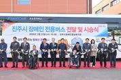 [경남도민뉴스=권중환 기자] 진주시는 지난 25일 진주시장애인종합복지관 주차장에서 장애인의 이동권 보장을 위해 도입한 ‘휠체어 리프트(Wheelchair Lift) 장착 수소 전기버스 전달 및 시승식’을 개최했다. 이번 행사에는 조규일 진주시장을 비롯하여 백승흥 진주시의회 의장, 진주시 장애인 단체·시설 임원, 복지관 이용자 등 60여 명이 참석하여 장애인의 안전하고 편리한 이동환경 조성을 함께 축하했다. 이번에 지원된 차량은 친환경 수소전기버스로, 휠체어 리프트 장치를 설치하고 휠체어석 6석을 포함한 28인승으로 운영된다. 이를 통해 시는 장애인복지관 이용자뿐만 아니라 관내 장애인단체 및 장애인복지시설 이용자들에게 안전하고 쾌적한 이동서비스를 제공할 계획이다. 진주시 관계자는 “장애인의 이동권은 단순한 교통 편의의 문제가 아니라 인간다운 삶을 위한 기본적인 권리”라며 “이번 휠체어 리프트 장착 버스의 도입이 장애인의 이동 편의를 높이고 지역사회 참여를 확대하는 계기가 되길 기대한다”라고 밝혔다. 한편, 진주시는 전국 최초로 2012년 7월 ‘무장애 도시’를 선포한 이후 장애인의 이동권