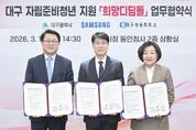 [경남도민뉴스=백상현 기자] 대구광역시는 삼성전자, 대구상공회의소와 함께 3월 16일 시청 동인청사 상황실에서 자립준비청년의 안정적인 사회 정착과 취업지원 강화를 위한 ‘희망디딤돌 업무협약(MOU)’을 체결했다. 이날 협약식에는 김정기 대구광역시장 권한대행을 비롯해 박승희 삼성전자 사장, 정효명 부사장, 하헌재 상무, 이경민 삼성생명 고문 등 주요 임원진과 박윤경 대구상공회의소 회장 등이 참석했다. 협약에 따라 대구시와 삼성전자는 지난 2016년 삼성전자의 사회공헌사업으로 설치된 ‘대구자립통합지원센터’의 시설 인프라 개선을 추진한다. 이를 통해 매년 센터를 이용하는 100여 명의 보호아동과 자립준비청년들에게 보다 쾌적하고 안전한 주거환경을 제공할 계획이다. 단순 주거지원을 넘어 청년들의 경제적 자립을 돕는 취업 지원 프로그램도 강화된다. 삼성전자는 ‘전자IT 제조기술자’ 및 ‘반도체 정밀배관 기술자’ 양성과정 등 전문적인 취업설계교육을 지원해, 청년들이 기술 역량을 쌓아 경제적으로 독립할 수 있는 기반을 마련한다. 더불어 대구상공회의소는 지역 우수기업을 발굴해 직무교육을