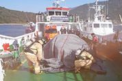 [경남도민뉴스=변정형 기자] 남해지방해양경찰청은 29일 오전 경남 하동 노량항 인근 해상에서 차도선 내 전기차 화재 사고 대비, 관계기관 합동 수난대비기본훈련을 실시했다고 밝혔다. 최근 전기차ㆍ리튬이온배터리 등 2차 전지 기인 화재 위험성에 대한 사회적 관심이 높은 가운데, 남해청 관내 전기차를 운송하는 차도선 및 여객선 29척에 대한 사전 예방 활동과 사고 발생 시 현장 대응 역량 강화 또한 요구되고 있는 실정이다. 이에 남해지방해양경찰청은 운항 중인 차도선 내 전기차에서 화재가 발생한 상황을 가정하여 승객 탈출 및 인명구조 활동은 물론, 하부관창과 질식소화덮개 등 전용 장비를 활용한 초기 화재 진압, 긴급 피항 이후 소방과 연계된 완전 진화 활동까지 실전 중심의 현장 기동훈련을 진행했다. 이날 훈련에는 하동군청, 남해군청, 해양환경관리공단, 소방 등 7개 유관기관 및 해양재난구조대(드론수색대)가 함께 했으며, 총 8척의 함선과 드론 1기, 차량 2대가 동원됐다. 뿐만 아니라, 이날 훈련에 참가한 유관기관 및 해양재난구조대 등을 대상으로 실제 전기차 배터리 셀에 화재 상황을 연출하고 전용 장비를