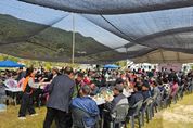 [경남도민뉴스=김태수 기자] 지난 30일, 화개면 그린나래공원에서 ‘꽃같이 아름다운 100세 잔치’가 성황리에 개최됐다. 화개면 주민자치회(회장 김용덕)에서 마련한 이번 행사는 경로효친 사상을 고취하고 어르신들의 노고에 감사하는 마음을 전하기 위해 마련됐으며, 화개면 어르신·주민, 기관·사회단체 등 700여 명이 참석해 자리를 빛냈다. 이날 주민들은 어르신들을 경공하는 봉사의 마음으로 관내 기관·사회단체 회원들이 앞장서서 음식을 대접하고 자발적으로 봉사하는 등 하나된 모습을 보였다. 특히, 화개면과 특별한 인연으로 해마다 화개면 발전에 힘을 보태는 ㈜디케이모터스 노기식 대표이사도 기부금을 전달해 화제를 모았다. 행사는 여는마당의 흥겨운 공연으로 시작되어 개회식, 다채로운 프로그램으로 꾸며진 어울림마당과 나눔마당 순으로 진행됐다. 행사의 개회식은 茶이야기라는 문화창작극으로 진행해 특별함을 더했다. 화개풍물패와 왕성초등학교 학생, 화개 차 문화반 등이 차밭에서 찻잎을 따고 덖고 비비는 등 일연의 과정을 판소리와 국악을 더해 표현했다. 그렇게 우려진 차는 임효원 화개면장, 하