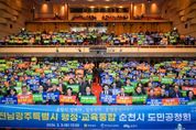 [경남도민뉴스=최인태 기자] 순천시는 전라남도와 함께 3일 순천문화예술회관에서 전남광주특별시 행정·교육 통합 도민 공청회를 개최하고, 통합 추진의 방향과 핵심 과제를 시민과 함께 논의했다. 이날 행사에는 노관규 순천시장을 비롯해, 김영록 전라남도지사, 김대중 전라남도교육감, 강형구 순천시의회 의장, 허동균 순천교육지원청 교육장, 지역 사회단체 관계자와 시민 등 1,000여 명이 참석해 전남·광주 통합에 대한 높은 관심을 보였다. 공청회는 노관규 순천시장의 환영사를 시작으로, 김영록 도지사의 전남·광주 행정통합 추진 방안 설명, 김대중 교육감의 교육 분야 통합 비전 제시, 시민과의 질의응답 순으로 진행됐다. 질의응답 시간에는 통합을 통한 시너지 효과 극대화를 위해 순천이 수행해야 할 전략적 역할과 핵심 과제가 집중적으로 논의됐다. 더불어 통합 이후 전남 서부권으로 산업·예산이 집중될 수 있다는 우려를 제기하며, 이를 상쇄할 방안들도 함께 논의됐다. 시민들은 ▲RE100 반도체 산단 순천 유치 필요성 ▲동부권 재정 쿼터제 도입 요구 ▲경전선 순천 구간 지하화 사업의 추진 현황과 전남도의 책임 있는 입장 ▲특별법안