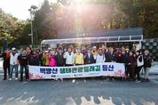 [경남도민뉴스=김태수 기자] 고성군은 11월 14일 고성문화원 소속 회원 50여 명이 참여한 가운데 벽방산 산행 행사를 성공적으로 마쳤다고 밝혔다. 이번 산행에 이상근 군수도 현장에 직접 참석해 산악회원들과 소통의 시간을 가졌으며, 등산객들은 벽방산의 자연환경과 경관을 함께 체험하고, 산행을 통해 지역 산악 관광 활성화 방안에 대한 다양한 의견을 군 관계자에게 전달했다. 특히 지역 산악회 회원들은 산행로 정비, 안전시설 보강, 벽방산 생태자원을 활용한 체험 프로그램 확대 등 현장 경험에 기반한 실질적인 의견을 제시했고, 고성군은 이번 산행에서 제시된 의견을 수렴하여 향후 산악관광 활성화에 적극 반영할 계획이다. 이상근 고성군수는 “고성군 최고봉(해발 650m)인 벽방산에 지역 산악회와 등산객들의 다양한 의견을 수렴하여 생태관광 인프라 확충을 위해 노력하겠으며, 주민 중심 생태관광지 개발을 통해 많은 군민과 관광객들이 고성의 자연을 안전하고 쾌적하게 즐길 수 있도록 지원하겠다”라고 밝혔다.