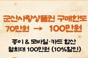 [경남도민뉴스=최인태 기자] 군산시가 설 명절을 맞아 2월 한 달간 군산사랑상품권의 1인당 월 구매 한도를 기존 70만 원에서 100만 원으로 한시적으로 전격 상향한다고 26일 밝혔다. 이번 사업은 설 명절 소비 집중 시기에 맞춰 △가계 부담 완화 △소상공인의 매출 증대 견인 △민생 안정 제고 △지역 상권 활성화를 위해 마련됐다. 이에 따라 소비자들은 2월 1일부터 28일까지 지류 상품권(10만 원→30만 원)과 카드·모바일 상품권(70만 원→100만 원)을 합산, 한 달 동안 1인당 월 최대 100만 원까지 상품권 구입이 가능하다. 단, 지류 상품권은 65세 이상 (1961년생까지)만 구매할 수 있고, 보유 한도도 종전과 같이 150만 원이다. 할인율은 기존과 같이 100만 원을 충전하면 10% 선할인 적용을 받아 10만 원의 혜택을 받을 수 있다. 종전(70만 원 충전·7만 원 혜택)과 비교하면 3만 원의 혜택이 늘어나는 셈이다. 특히, 지류 상품권의 구매 한도를 30만 원으로 한시적 상향하여 지류를 선호하는 65세 이상 어르신들의 이용 편의를 제공하게 됐다.