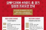 [경남도민뉴스=최미정 기자] 김해FC2008이 오는 21일 오후 2시 김해종합운동장에서 열리는 수원삼성블루윙즈와의 ‘하나은행 K리그2 2026’ 4라운드 홈 경기를 앞두고, 첫 승을 기원하는 대대적인 할인 프로모션을 진행한다고 밝혔다. 먼저 온라인 예매자를 대상으로 파격적인 가격 혜택을 제공하는 ‘빅토리(VICTORY) 이벤트’를 실시한다. 오는 16일(월) 오전 11시부터 놀티켓 웹 또는 앱을 통해 N석 입장권을 예매할 경우, 1매당 단돈 1,000원에 구매할 수 있다. N석은 김해의 서포팅존으로, 팬들이 선수단 벤치와 가까운 거리에서 보다 역동적인 응원을 보낼 수 있도록 기획됐다. 입장권은 1인당 최대 4매까지 예매 가능하다. 경기 당일 현장 매표소에서는 구단의 상징색을 드레스 코드로 활용한 ‘레드 코드(RED CODE) 이벤트’가 진행된다. 붉은색 상의(유니폼, 티셔츠 등)를 착용하고 방문한 관람객이 E석 입장권을 구매할 경우 50% 할인 혜택을 받을 수 있다. 이번 이벤트는 경기장을 붉게 물들여 선수들에게 승리의 에너지를 전달하자는 취지이며, 현장에서 1인 최대 4매까지 구매