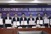 [경남도민뉴스=도문호 기자] 세종·제주·강원·전북 등 대한민국특별자치시도 행정협의회가 행정수도 세종 완성에 함께 힘을 모으기로 했다. 세종시는 14일 국회의원회관에서 열린 대한민국특별자치시도 행정협의회 정기회의에서 4개 시도지사가 공동결의문을 채택하며 행정수도 완성 등 주요 현안에 대한 협력을 공식화했다고 밝혔다. 이번 정기회의는 2025년 1월 법정 기구인 행정협의회로 전환된 이후 처음으로 열린 공식 회의로, 대표회장인 최민호 세종시장과 오영훈 제주도지사, 김진태 강원도지사, 김관영 전북도지사가 참석했다. 이들은 민선 지방자치 30주년을 맞아 실질적인 자치권 보장과 제도적 지위 강화를 위해 특별자치시도 간 협력을 강화하기로 뜻을 모았다. 이날 채택된 공동결의문에 따라 ▲특별자치시도 특별법 개정안의 조속한 국회 통과 ▲‘5극3특’ 국가균형발전 실천주체로서 역할 강화 ▲행정수도 완성 등 시도별 주요 핵심 과제에 공동 협력하기로 했다. 시는 세종시법 전부개정을 통해 지역에 특화된 발전과 자치권을 강화하도록 특별자치시도와 공동 대응하면서 국가균형발전 전략으로 행정수도 완성 공감대를 확산해 나