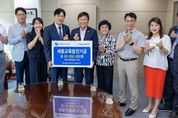 [경남도민뉴스=도문호 기자] 세종특별자치시교육청은 7월 8일 10시에 청사 3층 접견실에서 NH농협은행 세종본부와 ‘학교체육 발전을 위한 발전기금 전달식’을 가졌다. 이날 전달식에는 세종특별자치시 최교진 교육감을 비롯하여 NH농협은행 세종본부 홍순옥 본부장 등 관계자들이 참석했다. NH농협은행 세종본부에서는 매년 학교운동부 소속 학생선수를 후원하는 등 훈련 및 경기 능력 향상을 할 수 있도록 돕고 있으며, 세종을 대표하는 체육인재 양성에 큰 도움을 주고 있다. 올해는 제54회 전국소년체육대회 입상 학생선수와 학교운동부 소속 학생선수들을 위해 전의초 등 24교에 총 6,000만원을 기탁했다. NH농협은행 홍순옥 본부장은 “세종을 대표해서 출전한 학생선수들이 최고의 기량을 발휘할 수 있도록 응원하며 작은 힘이라도 보탤 수 있어서 감사하다. 앞으로도 세종시 학생선수들의 훌륭한 성장을 돕기 위해 아낌없이 지원하겠다.”고 약속했다. 최교진 교육감은 “세종시 학생선수들을 위한 NH농협세종본부의 관심과 사랑은 우리 학생선수 모두가 자신의 목표를 향해 나아가는 데 큰 힘이 되고 있다. 교육청에서도 학