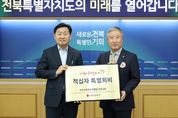 [경남도민뉴스=최인태 기자] 전북특별자치도는 2일 도청에서 대한적십자사 전북지사에 2026년도 적십자 특별회비 500만 원을 전달했다. 이번 전달식은 2026년도 적십자 모금 개시를 알리는 제1호 특별회비 전달식으로 진행됐으며, 김관영 도지사가 직접 특별회비를 전했다. 전달식에는 대한적십자사 전북지사 김홍식 회장과 임직원이 참석해 지역사회 나눔 실천의 의미를 함께했다. 전북도는 매년 적십자 특별회비를 기탁하며 도민 참여 확산과 기부문화 정착에 앞장서고 있다. 적십자 특별회비는 지역 취약계층 긴급지원, 재난 대비 및 구조 활동, 헌혈 활성화, 안전교육 등 다양한 인도주의 사업에 활용된다. 특히 기후변화로 인한 자연재해 증가와 복지 사각지대 확대 속에서 적십자 활동의 중요성이 더욱 강조되고 있다. 내년도 대한적십자사 전북지사의 적십자회비 모금 목표는 12억 4천만 원이며, 2026년 1월 31일까지 집중 모금기간을 운영하고 있다. 김관영 도지사는 “적십자 특별회비는 어려운 이웃을 돕고 재난 상황에서 생명을 지키는 데 중요한 역할을 한다”며 “전북도는 앞으로도 도민들과 함께 지역 공동체를 위