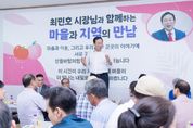 [경남도민뉴스=도문호 기자] 최민호 세종특별자치시장이 지난 27일 연서면 봉암2리에서 올해 두 번째 ‘시장과 함께하는 1박 2일’을 열고 주민과 함께 만들어가는 시정을 펼칠 것을 약속했다. 이날 최민호 시장은 연서면 월하천 재해예방사업(1단계) 현장을 먼저 방문해 사업 진행 상황을 살폈다. 월하천 재해예방사업(1단계)은 연서면 고복리∼쌍전리 일원 교량 재가설 및 제방보강 등 하천환경 정비를 통해 홍수 등의 재해예방과 치수 안전성을 확보하기 위해 추진되며 오는 9월 준공 예정이다. 최 시장은 이 자리에서 근로자들의 안전사고에 유의하면서 주민들을 자연재해로부터 안전하게 보호하도록 사업 추진에 각별히 신경 써 달라고 당부했다. 이어 봉암2리 마을회관으로 이동해 주민 30여 명과 허심탄회한 대화의 시간을 가졌다. 주민들은 마을회관 뒤 소방도로 잔여구간 확·포장, 노인일자리 지원사업을 통한 마을카페(사회적협동조합) 운영인력 지원, 수문강길 공용화장실 인근 방범 폐쇄회로(CC)TV 설치 등 마을현안 해결을 건의했다. 먼저 현재 마을주민으로 구성된 사회적협동조합의 구성원들이 마을카페를