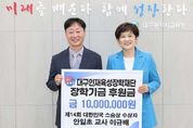 [경남도민뉴스=백상현 기자] 대구 남구 국공립어린이집연합회에서는 지난 15일 이웃 성금 100만원을 남구청에 전달하며 어려운 이웃을 위한 따뜻한 나눔을 실천했다. 이번 성금은 지역의 소외계층을 위한 다양한 복지사업에 사용될 예정이며 연합회는 “작은 정성이지만 지역사회에 도움이 되기를 바란다.”라고 전했다. 조재구 남구청장은 “매년 따뜻한 마음을 베풀어주셔서 감사드리며 앞으로도 아이 키우기 좋은 남구를 만드는 데 힘쓰겠다.”라고 밝혔다.