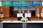 [경남도민뉴스=오창경 기자] 안동시는 2월 27일 안동시청에서 평택시와 자매결연 협약을 체결하고 경제․문화․관광‧농업 등 전 분야에 걸친 상생발전의 닻을 올렸다. 이번 협약은 ‘한국 정신문화의 수도’ 안동과 ‘첨단산업‧국제물류 중심도시’ 평택이 각자의 강점을 결합해 지속 가능한 협력 모델을 구축하고자 추진됐다. 양 도시의 인연은 2024년 4월 평택시가 안동시에 자매결연을 공식 제안하면서 시작됐으며, 이후 2년에 걸친 실무진의 상호 방문을 통해 구체적인 협력사업을 논의해 왔다. 특히 양 도시는 행정교류를 넘어 재난 상황에서 끈끈한 연대를 보여왔다. 지난해 3월 평택시는 안동 대형산불 피해 복구를 위해 등짐펌프 100개를 긴급 지원했으며, 그해 5월 평택 소재 기업과 민간단체가 안동 산불 피해 청소년들을 위한 장학기금 2천만 원을 기탁하며 실질적인 협력과 상생의 의지를 보여줬다. 양 도시는 이번 자매결연을 계기로 지역별 강점을 활용한 특화사업을 적극 발굴하여 추진할 계획이다. 평택시는 국내 최대 주한미군 주둔지인 국제도시로서의 강점을 활용해 ‘주한미군 연계 교류 프로그램’을 제안했으며, 세계적 산업
