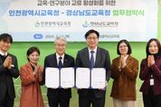 [경남도민뉴스=구인애 기자] 경상남도교육청은 12일 인천광역시교육청에서 교육·연구 분야의 교류를 활성화하고 두 기관의 상생 발전을 돕기 위한 업무 협약을 체결했다. 두 교육청은 이번 협약을 통해 긴밀한 소통 체계를 구축하고, 각 기관의 우수한 교육 프로그램을 연계해 상호 발전적인 교육 정책을 펼쳐 나갈 계획이다. 협약식은 양측 관계자들이 참석한 가운데 협약서 낭독과 서명에 이어, 구체적인 교류 협력 방안을 논의하는 대담 순으로 진행됐다. 특히 두 기관은 독서교육 정책을 핵심 협력 과제로 정했다. 경남교육청의 ‘언제나 책 읽는 학교’와 인천교육청의 ‘읽걷쓰(읽기·걷기·쓰기)’ 프로그램을 서로 공유하고, 이를 더욱 발전시키기 위해 힘을 모으기로 했다. 주요 협약 내용은 ▲기관별 운영 프로그램 연계를 통한 발전 노력 ▲핵심 역량 함양을 위한 독서교육 추진 협력 ▲지역 문제 해결 및 사회공헌 프로그램 개발·운영 ▲기타 교육 발전에 필요한 사항에 대한 상호 지원 등이다. 박종훈 교육감은 “이번 협약은 시·도교육청의 경계를 넘어 미래 교육을 위한 교육 생태계를 구축하기 위한 토대를 마련했다는 점에서 의미가 크