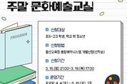 [경남도민뉴스=최재경 기자] 울산학생교육문화회관은 오는 4월 4일부터 5월 17일까지 울산 지역 초등학교 5학년부터 고등학교 3학년 학생을 대상으로 ‘2026년 제1기 주말 문화예술 교실’을 운영한다. 주말 문화예술 교실은 학생들의 예술적 소질을 계발하고 주말 여가 시간을 알차게 보내도록 돕고자 마련됐으며, 특히 올해는 지난해보다 신규 강좌 6개를 추가해 학생들의 선택 폭을 대폭 넓혔다. 학생들은 자신의 관심사에 맞춰 토요일과 일요일 중 원하는 강좌를 선택해 참여할 수 있다. 토요일에는 목공, 영상편집과 제작, 친환경 공예(웜아트), 라탄 공예, 우쿨렐레 등을 운영한다. 일요일에는 그림(그래픽) 디자인, 도시 풍경 그리기(어반스케치), 인공지능 자료(콘텐츠) 제작, 드럼, 철사(와이어) 공예 등 총 10개 강좌를 운영한다. 참가자 모집은 오는 3월 16일 오후 9시부터 19일 오후 5시까지 진행된다. 울산교육청 통합예약시스템으로 선착순 접수하며, 모집 인원은 강좌별 15명씩 총 150명이다. 김현미 관장은 “이번 주말 문화예술 교실은 신규 강좌가 많이 개설된