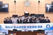 [경남도민뉴스=최인태 기자] 여수시의회(의장 백인숙)는 지난 11월 29일 여수시청소년참여위원회의 방문을 맞아 의회 견학과 의장과의 대화 시간을 마련하고, 청소년의 시각에서 바라본 여수의 미래 발전 방향에 대해 의견을 나누었다. 여수시청소년참여위원회는 청소년들의 권익을 보호하고 청소년 관련 현안에 의견이 반영되도록 마련한 기구로, 고등학생 19명과 학교 밖 청소년 2명 등 총 21명의 위원으로 구성됐다. 이번 방문은 청소년들이 지방의회의 역할과 의정활동의 실제를 현장에서 체험하고, 지역사회 정책 형성 과정에 참여할 수 있는 기반을 마련하기 위해 추진됐다. 참가 청소년들은 본회의장과 상임위원회실 등 의회시설을 둘러보며 의정 운영 절차를 이해하고, 시정과 제도에 대한 관심을 높였다. 특히 백인숙 의장과의 간담회에서는 △청소년 문화·예술 공간 확충 △청소년 참여 기반 제도 마련 △환경 및 도시 공간 개선 △진로·지역 미래 전략 등 네 가지 분야를 중심으로 활발한 질의와 의견 제시가 이어졌다. 청소년들은 “우리의 의견이 시정에 반영될 수 있기를 바란다”, “청소년도 지역의 일원으로 책임을 가지고 참여하고