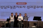 [경남도민뉴스=백형찬 기자] 거창군은 한국농촌지도자거창군연합회(회장 문종대) 회원 40명이 지난 3일 함안군 함주공원 다목적잔디구장에서 개최된 ‘제56주년 경상남도 농촌지도자 성과공유대회’에 참석했다고 밝혔다. 이번 대회는 경남의 농촌지도자 회원 1,000여 명이 참가한 가운데 시군간담회와 시군 화합 한마당, 농‧특산물 전시 및 평가 등으로 진행되어 창조농업을 선도하는 지도자들의 역할 다짐과 시군 간 교류의 장이 됐다. 개회식에서 거창군 회장 문종대 씨가 도지사 표창을, 주상면 회장 김광성 씨가 도회장 표창을 받았다. 또한, 농‧특산물 전시대에 거창의 특산물인 사과, 샤인 머스캣, 사과즙, 사과 화장품 등을 전시해 지역농산물과 가공품을 홍보하고 우수성을 알린 결과로 전시대회 최우수를 수상하여 상금 50만 원을 받는 쾌거를 이뤘다. 농촌지도자거창군연합회는 지역의 농업지식 전파와 보급을 통해 농업‧농촌 발전의 중추적인 역할을 하는 지역지도자 학습단체로 11개회 435명의 회원으로 구성돼 우애‧봉사‧창조의 정신을 구현하며 농촌발전에 힘쓰고 있다. 김규태 거창군농업기술센터 소장은 “거창군 농촌과 지역사회의 발전을 위해 많은 노력을 해 주신 농촌지도자 회원들의 성과와