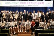 [경남도민뉴스=김동규 기자] 용인특례시는 6일 오후 용인시평생학습관 큰어울마당에서 시민 500여 명이 참석한 가운데 ‘용인시무용아카데미 작품발표회’가 열렸다고 7일 밝혔다. 용인문화재단(이사장 이상일 시장) 주최로 열린 이날 작품발표회는 용인시민무용아카데미 제1기 수강생 121명이 그동안 배운 실력을 뽐내며 다채로운 무대를 꾸몄다. 수강생들은 태평무, 산조춤, 장고춤, 버꾸춤 등 다양한 한국무용과 함께 라인댄스, 밸리댄스, 셔플댄스, 뮤지컬댄스 등 생활무용까지 폭넓게 익히며 무용의 깊이와 즐거움을 나눠 왔다. 어린이 수강생들은 소고춤과 탈춤을 배웠다. 용인시민무용아카데미 수강생들은 지난 9월 말 용인미르스타디움에서 열린 '2025 대한민국 조아용 페스티벌' 퍼레이드에 참여해 시민들의 큰 호응을 받은 바 있다. 국립국악원 무용단의 축하공연으로 막을 연 작품발표회는 1부 태평성대, 2부 전통의 향기, 3부 시민의 꿈, 4부 미래의 몸짓을 주제로 1시간20분가량 진행됐다. 수강생들은 한국무용인 태평무, 산조춤, 버꾸춤, 장고춤, 소고춤, 탈춤을, 생활무용인 라인댄스, 셔플댄스, 뮤지컬댄스,