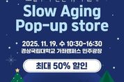 [경남도민뉴스=구인애 기자] 경상남도는 재단법인 경남항노화연구원(원장 한기민)이 19일 경상국립대학교 가좌캠퍼스에서‘ 슬로우에이징 팝업스토어’를 개최한다고 밝혔다. 이번 행사에 ㈜뉴헤리티지 등 도내 항노화 기업 10곳 참여해 30여 개 품목을 선보였으며 지역 항노화 산업 육성을 위한 오프라인 기획전으로 마련됐다. 글루텐 프리 간식, 건강음료 등 항노화 식품과, 비건 인증 화장품 등 젊은 소비층 취향에 맞춘 다양한 웰니스 제품을 선보인다. 특히, 최대 50% 할인, 1+1 프로모션, 구매 영수증 룰렛 이벤트, 선착순 뽑기 등 다양한 프로그램을 준비해 방문객들의 큰 호응을 끌어낼 예정이다. 이번 팝업스토어가 참여 기업에, MZ세대의 항노화 제품 수요와 현장 반응을 확인하고 상품개발 개선과 시장성 검증을 위한 기회의 장이 될 전망이다. 한기민 연구원장은 “도내 항노화 기업의 우수한 제품을 신세대 소비층에게 직접 소개하는 뜻깊은 자리”였으며 “앞으로도 지역 기업 경쟁력 강화를 위해 다양한 프로모션을 연계하는 사업을 지속적으로 추진하겠다”고 밝혔다.