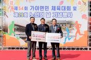 [경남도민뉴스=김춘호 기자] 합천군은 26일 가야면 해인중학교 운동장에서 열린 제54회 가야면민체육대회 및 제29회 노인의 날 기념행사 현장에서 부산·울산지역 향우가 고향사랑기부금 600만원을 기탁했다고 밝혔다. 이날 기탁은 가야면 체육회가 주최한 가야면민체육대회 행사 중 진행됐으며, 부산향우와 울산향우(익명 요청)가 각각 300만원씩 고향사랑기부금을 전달했다. 기탁식에는 두 향우가 직접 참석하지 못했으며, 최덕규 전 가야농협장과 임재후 가야면체육회장이 대신 전달해 뜻깊은 마음을 전했다. 기탁된 성금은 합천군 고향사랑기금으로 적립돼 지역 복지증진과 주민 생활여건 개선을 위한 사업에 사용될 예정이다. 김윤철 합천군수는 “타지에서도 늘 고향을 잊지 않고 따뜻한 정성을 보내주신 향우 여러분께 깊이 감사드린다”며 “소중한 기탁금은 지역사회를 위해 의미 있게 활용하겠다”고 전했다. 고향사랑기부제는 개인이 주소지를 제외한 지방자치단체에 연간 2,000만 원 이하의 금액을 기부할 수 있으며, 세액공제(10만 원까지 전액, 초과분 16.5%)와 함께 30% 상당의 답례품(지역특산물·합천사랑상품권