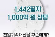 [경남도민뉴스=백형찬 기자] ■ 불의로 축적된 재산은 환수되어 이 땅의 정의를 지킨 독립유공자와 그 유족을 위해 사용되고 있습니다 국가보훈부는 현재 국회에 발의된 「친일반민족행위자 재산의 국가귀속 등에 관한 특별법안」 재제정안이 원활히 통과될 수 있도록, 관련 부처인 법무부와 긴밀히 협력하기로 했습니다. 또한, '친일귀속재산의 후손 재매각 방지' 등을 위한 '심의 기구' 설치 등 관리 강화 방안도 함께 추진합니다. ■ 친일귀속재산 → 체계적인 관리 국가보훈부는 친일귀속재산의 체계적인 관리와 매각 절차를 강화하기 위해 지난해 11월부터 올해 4월 말까지 전수 조사를 진행, 과거 수의계약 사례를 분석했습니다. 분석 결과, 수의계약 사례 중 친일귀속재산의 후손 재매각으로 추정되는 사례로 3개 유형을 추출했습니다. * 점유물(필지 내 묘지 또는 건물 존재)과 권리관계(공유지분 설정), 매수자 특성(인접지 소유자(가족) 매수)에 따른 3개 유형. - 후손재매각 추정재산과 동일유형의 재산 118필지(14%) - 매각 제한 440필지(52.3%) - 매각 가능 284필지(33.7%) →