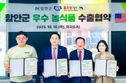 [경남도민뉴스=권중환 기자] 함안군은 미국 시장 개척을 위한 첫 공식 방문에서 의미 있는 성과를 거두며 해외 수출 확대에 청신호를 밝혔다. 군은 지난 14일 조근제 함안군수를 단장으로 신해근 농협함안군지부장, 안문준 농업기술센터 소장을 비롯해 관내 우수 농식품 업체 4곳과 함께 미국 시장 개척단을 구성해 미국 로스앤젤레스를 방문했다. 이번 방문에서 함안군은 로스앤젤레스 현지 농식품 유통 전문기업 바다글로벌(BADA GLOBAL)과 100만불 규모의 농식품 수출 활성화 업무협약을 체결했다. 바다글로벌은 로스앤젤레스에 본사를 둔 한인 식품 유통 기업으로, 미국 전역에 물류망과 유통망을 보유하고 있어 함안 농식품의 미국 시장 진출 교두보 역할이 기대된다. 조근제 군수는 “이번 협약은 함안 농식품의 우수성을 세계 시장에 알릴 수 있는 기회”라며 “케이-푸드(K-푸드)에 대한 관심 증가와 함께 현지 유통망를 확대해 수출 기반을 공고히 하겠다”고 말했다. 함안군은 이번 미국 방문을 통해 아시아 중심이었던 기존 수출 시장을 북미 지역으로 다변화하는 계기를 마련했으며, 앞으로도 농식품 세계화를 위한