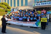 [경남도민뉴스=박만수 기자] 민족통일 옥천군협의회(회장 이규억)가 4일 옥천읍 행정복지센터에서 회원 45여 명이 참석한 가운데 ‘농어촌 기본소득 시범사업지 옥천군 추가 지정 촉구 결의대회’를 개최했다. ‘농어촌 기본소득 시범사업’은 농촌 지역의 생활 안정과 지역경제 활성화를 목표로 한 정부 핵심 사업으로, 선정된 마을 주민들에게 2026년부터 2027년까지 2년간 매월 15만 원의 기본소득을 지급하는 제도다. 정부는 지난 10월 20일 경기 연천, 강원 정선, 충남 청양, 전북 순창, 전남 신안, 경북 영양, 경남 남해까지 총 7개 군을 최종 사업 대상지로 선정했다. 이날 결의는 최근 정부의 농어촌 기본소득 시범지역 선정 과정에서 옥천군이 제외된 데 따른 것으로, 참석자들은 “지역 형평성 및 지역균형발전을 고려하여 옥천군을 추가 지정해야 한다”는 데 뜻을 모았다. 이규억 회장은 “옥천과 같은 농촌 지역이 활력을 되찾고 세대 간 균형을 이루기 위해서는 충북을 배제해서는 안된다”며 “군민의 기대와 희망이 담긴 농어촌 기본소득 시범사업에서 옥천군이 제외된 것은 큰 아쉬움이다. 지금이라도 옥천
