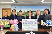 [경남도민뉴스=권중환 기자] 진주시는 3일 시청 기업인의 방에서 산청군농협 임직원 80여 명이 동참한 고향사랑기부금 800만 원을 기탁받았다고 전했다. 이번 기탁은 진주서부농협과 산청군농협 임직원들이 양 지역의 발전을 응원하기 위해 뜻을 모아 상호 기부에 참여하며 이루어진 것이다. 진주서부농협과 산청군농협은 고향사랑기부제가 시행된 2023년부터 3년 연속으로 상호 기부를 이어오고 있다. 이는 지역 발전과 상생을 향한 두 지역의 긴밀한 협력의 결실이다. 조규일 진주시장은“농협 임직원 여러분의 따뜻한 상생 기부는 두 지역의 미래 발전에 귀한 힘이 되고 있다”며 “앞으로도 협력의 폭을 더욱 넓혀 모두가 함께 성장하는 지역 공동체를 만들어 가겠다”고 말했다. ‘고향사랑기부제’는 개인이 본인의 주소지를 제외한 전국의 지자체에 연간 2000만 원까지 기부할 수 있는 제도이다. 10만 원까지 100%, 10만 원 초과분은 16.5%의 세액공제 혜택(단, 개인의 결정세액에 따라 공제금액 차이 있음)이 주어지며, 지자체에서는 지역 농특산물을 답례품으로 전달하고 있다. 고향사랑기부는 ‘고향사