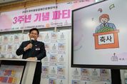 [경남도민뉴스=김완호 기자] 박강수 마포구청장은 11월 27일 오후 4시, ‘마포 발달장애인 문화창작소(양화로 178-5)’ 개관 3주년 기념 파티에 참석해 이용인·가족·운영 관계자들과 따뜻한 축하의 시간을 가졌다. 이번 행사는 서울장애인부모연대 마포지회가 주최·주관한 것으로, 그동안 문화창작소를 이용해 온 발달장애인들의 활동 성과를 함께 나누기 위해 마련됐다. 마포 발달장애인 문화창작소는 훌라, 클라이밍, 요리 교실 등 다양한 프로그램을 운영하며 발달장애인의 생활 능력 향상과 문화 활동 참여 확대를 위해 꾸준히 노력해오고 있다. 행사는 개회 선언을 시작으로, 문화창작소가 지난 3년 동안 만들어 온 성장의 발자취를 담은 성과 영상 상영과 박강수 마포구청장의 축사, 그리고 듀엣 바이올린 축하 공연이 이어지며 잔잔한 감동과 따뜻한 응원이 흐르는 시간으로 채워졌다. 이어진 족자 및 감사장 전달식에서는 문화창작소의 운영을 위해 보이지 않는 곳에서 힘써온 지도자에게 감사의 마음을 전하며 서로를 격려하는 뜻깊은 순간이 마련됐다. 마지막으로 3주년을 기념하는 떡케이크 커팅이 진행되자 현장에는 축하의