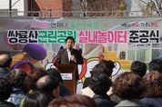 [경남도민뉴스=김완호 기자] 박강수 마포구청장은 3월 13일 오후 1시 30분, 쌍룡산근린공원(염리동 532-5)에서 열린 ‘쌍룡산근린공원 실내놀이터 조성사업 준공식’에 참석해 어린이와 가족을 위한 새로운 놀이공간의 조성을 축하했다. 쌍룡산근린공원 실내놀이터는 미세먼지와 폭염, 한파 등 날씨의 영향을 크게 받지 않고 아이들이 사계절 내내 이용할 수 있도록 조성된 공간이다. 실내에는 통슬라이드와 낚시놀이, 미디어존 등 다양한 놀이시설을 갖췄고, 보호자를 위한 휴식 공간도 함께 마련해 가족 단위 이용객의 편의를 높였다. 여기에 옥상 잔디광장, 휴식 공간이 더해지면서 실내 놀이와 야외 활동을 함께 즐길 수 있도록 했으며, 주변에는 수목관찰 오솔길과 매화나무·산수유나무 등 다양한 수목과 초화류를 갖춰 어린이들이 자연을 가까이에서 함께할 수 있도록 했다. 박강수 마포구청장은 실내놀이터 내부와 옥상 공간 등을 둘러본 뒤 주민들과 함께 기념식수를 하며 현장을 살폈다. 박 구청장은 “최근 우천과 폭염, 폭설 등 날씨와 관계없이 아이들이 안전하게 이용할 수 있는 실내공간의 필요성이 점점 커지고 있다”라