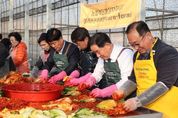 [경남도민뉴스=박만수 기자] 생거진천 케어팜(대표 이장호)는 19일 지역사회 나눔문화 확산을 위한 ‘2025 생거진천 케어팜 김장축제’를 성황리에 개최했다. 올해 김장축제는 생거진천 케어팜에서 직접 재배한 배추와 지역사회에서 마련된 농산물을 활용해 김장김치를 담가 복지 소외계층, 복지사각 지대 100가구에 전달하기 위해 마련됐다. 특히 진천군 4-H 연합회(회장 성기빈)가 배추 1,500포기, 나눔터에서 성금 100만원을 후원하며 나눔 문화 확산에 큰 의미를 더했다. 현장에는 대한적십자봉사회진천군지구협의회, 진천군여성단체협의회, 진천군4-H연합회, 한국장애인부모회진천군지부, 이월로타리클럽, 대한노인회진천군지회, 진천군노인복지관 선암회 등 다양한 기관·단체, 자원봉사자, 지역 주민 등 100여 명이 참여했다. 송기섭 진천군수는 “지역의 여러 단체와 주민들이 마음을 모아 어려운 이웃을 위해 정성껏 김장을 준비해 주신 데 깊이 감사드린다”고 말했다. 같은 날, 진천군가족센터는 군 여성회관에서 다문화가족 25여 명이 참여한 가운데‘김장 체험과 사랑의 김장 나눔’ 행사를 진행했다.