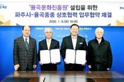 [경남도민뉴스=김동규 기자] 파주시가 율곡 이이 선생의 학문과 철학을 체계적으로 계승하기 위해 추진 중인 ‘율곡문화진흥원’설립을 위해 지난 6일 율곡 선생의 후손인 덕수 이씨 종중과 업무협약을 체결했다. 파주시장 접견실에서 치러진 이날 협약식 현장에는 김경일 파주시장을 비롯한 파주시 관계자들과 덕수 이씨 대종회, 덕수 이씨 찬성공파 종회를 대표하는 인사와 율곡 선생의 종손이 참석해 율곡문화진흥원 설립 추진을 위한 상호 간 협력을 다짐했다. 협약의 주요 내용으로는 율곡문화진흥원 건립부지 확보 상호협조, 율곡문화진흥원 설립 기본계획 및 추진방향에 대한 협력, 율곡이이 선생 관련 종중 보유 역사·문화자료 제공, 사업 추진에 필요한 협력체계 구축 등이다. 김경일 파주시장은 “이번 협약은 율곡 선생의 정신을 현대적으로 계승하고, 파주시를 대표하는 역사·문화 자산을 체계적으로 발전시키는 중요한 출발점”이라고 강조하며 “율곡문화진흥원이 학술과 교육, 문화가 융합된 거점시설로 자리매김할 수 있도록 율곡 종중과의 협력에 최선을 다하겠다”라고 말했다. 율곡 종중 관계자 역시 “율곡 선생의 사상과 업적이 올바르게 계승
