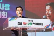 [경남도민뉴스=김태수 기자] 고성군은 경남도와 산청군이 주최하고 경남축산단체협의회와 경남농협이 주관한 ‘제11회 경남 축산사랑 한마음대회’가 10월 17일, 고성군 스포츠파크 4구장에서 개최됐다고 밝혔다. '미래를 여는 힘! 건강한 축산, 행복한 경남!'이라는 주제로 열린 이번 행사에는 박완수 도지사, 류길년 농협 경남지역본부장 등이 참석한 가운데 도내 축산농가 1000여 명이 참석해 성황을 이뤘다. 행사는 식전 축하공연을 시작으로 축산발전 유공자에게 도지사 표창 및 공로패 수여, 행사 퍼포먼스에 이어 축종 별 우수 축산물 시식회, 축산물 소비촉진 행사, 축산물을 이용한 소비자 체험, 축산기자재 홍보 및 전시관 운영, 어울림 한마당 등 다양한 프로그램으로 진행됐다. 이상근 고성군수는 환영사에서 "최근 사료값 인상과 인건비 상승, 가축전염병 발생 증가 등으로 축산인이 어려움을 겪고 있다"라며, "꿋꿋하게 현장을 지켜온 축산인들의 화합과 단결로 축산업의 미래를 모색하는 소중한 자리가 되길 바란다"라고 전했다. 한편 이날 시상식에서는 축산과 박경민 주무관이 축산발전유공 도지사상을, 축산과 축산행정담당 제