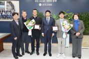 [경남도민뉴스=최인태 기자] 전주시의회 김성규(효자2·3·4동), 김정명(동서학,서서학,평화1·2동) 의원이 전주시의회 행정사무감사특별위원회가 뽑은 ‘2025 행정사무감사 우수위원’에 선정됐다. 12일 전주시의회는 남관우 의장과 김원주 운영위원장, 이남숙 행정감사특별위원장 등이 참석한 가운데 의장실에서 김성규, 김정명 의원에 대해 행정사무감사 우수위원 감사패 수여식을 가졌다. 행정사무감사특별위원회 소속 의원들은 최근 감사 활동이 우수한 의원 2명을 행정감사 우수위원으로 선정했다. 남관우 의장은 “두 의원이 행정사무감사에서 논리적인 정책 비판과 시정 전반에 대한 문제점 지적, 대안 제시 역할로 전주시 발전에 공이 많았다”고 평가했다. 지난달 18~26일 진행된 행정감사에서 김성규 의원은 실패한 드론축구월드컵, 무리하게 추진된 명품하천조성사업, 김정명 의원은 20억원 세금 날린 전주시 재활용시설 증설 취소, 장애인전용주차구역 과태료 개선 시급 등의 문제를 날카롭게 지적했다. 수상 의원들은 “시민의 뜻을 대변하는 의원으로서 당연히 해야 할 일을 했을 뿐인데 너무나 큰 상을 받게 된 것 같다