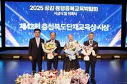 [경남도민뉴스=박만수 기자] 충청북도교육청은 23일 오전, 교육문화원 대공연장에서 제42회 충청북도단재교육상 시상식을 가졌다. 이날 시상식에는 윤건영 교육감을 비롯해 100여 명이 참석해 수상자들을 축하했다. 충북단재교육상은 역사학자, 언론인, 독립운동가로 활동했던 단재 신채호 선생의 높은 뜻을 기리고 충북교육 발전에 이바지한 인사들에게 주는 상으로 올해 마흔 두번째를 맞았다. 올해 제42회 충청북도단재교육상 수상자는 ▲사도부문 송문규 봉황송온마을돌봄공동체 대표 ▲학술부문 최시선 옥산중학교 교장 ▲공로부문 민용순 청주시장애인가족지원센터 센터장이다. 사도부문 수상자 송문규 대표는 “학생 한 명 한 명이 소중한 존재로 존중받는 마을이 곧 교육의 출발점이라고 믿는다.”라며, “앞으로도 아이들이 배움과 돌봄 속에서 함께 성장할 수 있는 공동체를 만들어 가겠다.”라고 소감을 전했다. 학술부문 수상자인 최시선 교장은 “교육은 지식을 전달하는 일이 아니라 사람을 깊이 이해하고 성장시키는 일이라 생각한다.”라며, “앞으로도 인문학적 성찰과 배움의 기쁨이 살아 있는 학교를 만들기 위해 노력하겠다.”라고 소감을 밝혔