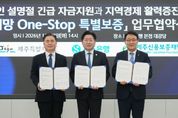[경남도민뉴스=하형수 기자] 제주특별자치도가 설 명절을 앞두고 자금 수요가 늘어나는 소상공인의 경영 부담을 덜기 위해 100억 원 규모의 특별 보증을 마련해 지역경제에 온기를 불어넣는다. 제주도는 27일 제주은행 본점에서 제주은행, 제주신용보증재단과 함께 소상공인 설명절 긴급 자금지원과 지역경제 활력 증진을 위한 ‘희망 원스톱(One-Stop) 특별보증’ 업무협약을 체결했다. 이번 특별보증은 제주은행의 특별출연금 6억 7,000만 원을 재원으로 총 100억 원 규모로 조성되며, 2월 5일부터 재원 소진 시까지 운영된다. 특별보증 대상은 제주지역화폐 ‘탐나는전’ 가맹 소기업·소상공인으로, 대규모 점포와 사행성·유흥업종, 온라인 쇼핑몰 등은 제외된다. 금융 취약계층 소상공인의 부담을 덜기 위해 보증심사 기준을 완화하고, 보증수수료는 기본요율보다 0.3%p 낮은 0.9%를 적용하며, 기존 대출금리 대비 0.9%p 감면된 우대금리를 제공한다. 특히 제주신용보증재단의 ‘보증드림’ 애플리케이션을 활용한 비대면 자동심사 방식을 도입했다. 재단 방문 없이 신청부터 심사까지 한 번에 처리할 수 있어