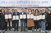 [경남도민뉴스=김태수 기자] 산청군은 27일 군청 군정회의실에서 산엔청복지관 등 장애인 단체와 ‘장애인 평생학습도시 운영을 위한 업무협약’을 체결했다고 밝혔다. 이번 협약은 지역 중심의 장애인 평생교육 기반을 강화하고 장애 유형과 정도를 고려한 맞춤형 프로그램 제공을 통한 장애인 학습권 보장을 위해 마련됐다. 협약에는 산엔청복지관, 경남시각장애인연합회 산청군지회, 경남농아인협회 산청군지회, 경남장애인부모연대 산청군지회, 경남지체장애인협회 산청군지회 등이 참여해 장애인 평생학습도시 조성을 위한 유기적인 협력 체계 구축에 힘을 모으기로 했다. 특히 실무협의회 구성·운영으로 장애인의 접근성을 높인 프로그램을 공동 발굴하고 교육 사각지대를 해소해 장애인이 지역사회 내에서 배움을 통해 자립하고 성장할 수 있는 토대를 마련한다는 계획이다. 주요 내용으로는 장애인 평생학습도시 운영을 위한 중장기 발전전략 수립, 장애인 평생학습도시 내 평생교육 지원 시스템 구축, 연간 운영 계획 수립 등이다. 이승화 산청군수는 “이번 협약은 모두가 차별 없이 성장하는 평생학습 도시를 만드는 중요한 첫걸음”이라며